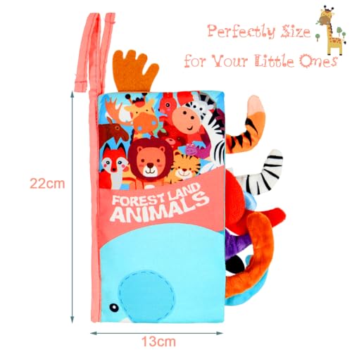 Vicloon Libri di Stoffa per Neonati, 5 Pagine Libro Interattivo con Coda di Animali, Libro Bambino in Tessuto Morbido con Gancio per Passeggino, Giocattoli Educativi del Libri per Neonato