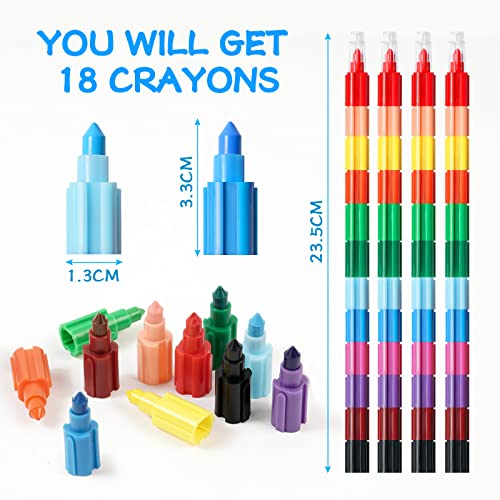 【Tuta di utilità】Il set contiene 18 pastelli. I genitori risparmiano tempo e fatica non dovendo aiutare i propri figli ad affilare le matite. Il set di pastelli impilabili è sufficiente per i bambini da usare e cambiare ogni giorno o da condividere con i loro amici e compagni di classe.