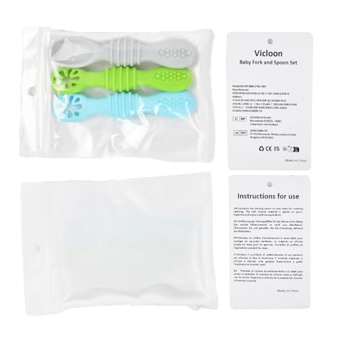 Vicloon 3 Pezzi Precucchiai per Neonati, Cucchiaino Svezzamento Silicone senza BPA, Cucchiai per Apprendimento per Bambini con Scanalature della Dentizione, per Bambini Fase 1 + Fase 2, Blu