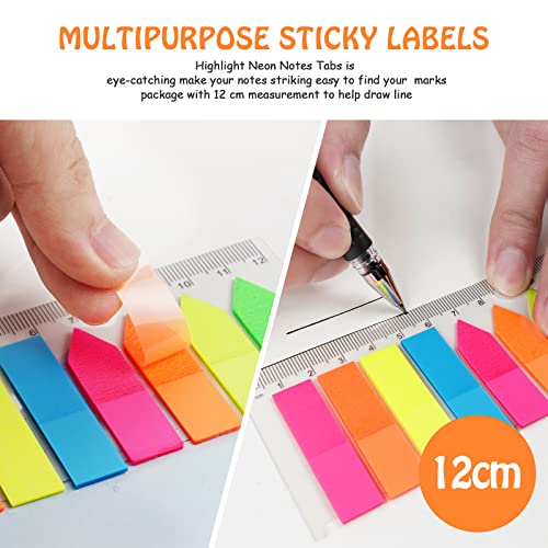 Vicloon 1280 Pezzi Segnapagina Colorati Linguette Adesive, Schede Rettangolo e Freccia con Strumento di Misurazione Trasparente Segnalibri Segnapagina Blocchetti