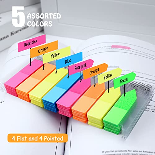 1280 pezzi di etichette colorate con bandierine: la confezione include 8 confezioni di etichette adesive, ogni confezione contiene 80 bandierine di foglietti adesivi rettangolari e 80 bandierine di foglietti adesivi a forma di freccia, per un totale di 1280 pezzi. Diversi colori brillanti e una quantità sufficiente possono soddisfare le tue esigenze quotidiane.