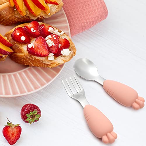 Vicloon Set di Posate per Bambini, 4 Pezzi Cucchiaio e Forchetta per Bambini in Acciaio Inossidabile, Cucchiaio e Forchetta Da Addestramento per L'alimentazione del Bambino, Carota Rosa e Arancione