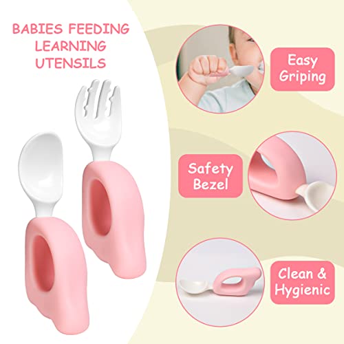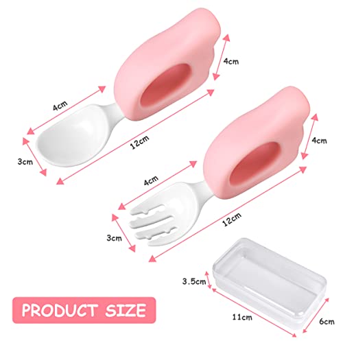 Vicloon Set di Posate per Bambini, 2 Pezzi Cucchiaio e Forchetta da Addestramento per L'alimentazione del Bambino, Cucchiaio e Forchetta per Bambini Posate Svezzamento, Forma di Ali D'angelo Rosa