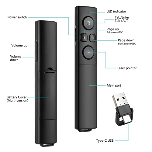 Vicloon Presenter Wireless, 2 in 1 USB Tipo C Presenter Wireless per Presentazione Powerpoint da 2.4GHZ, Penna Telecomando Senza Fili, Dispositivo per Presentazioni per Word, Excel, PowerPoint e Lync