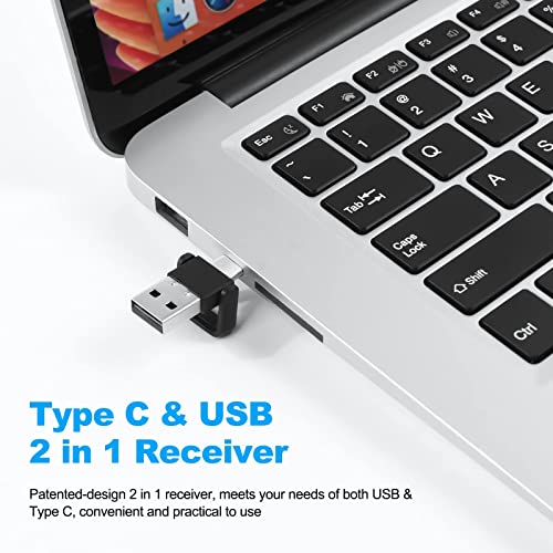 ✏【Ricevitore 2 in 1】La penna remota wireless 2in1 ha uno speciale e pratico telecomando di presentazione progettato di tipo C brevettato e un ricevitore USB 2 in 1, che può essere utilizzato non solo per dispositivi di interfaccia USB A, ma adatto anche per tipo-c dispositivi di interfaccia, come MacBook Pro, Mac Mini, HP EliteBook serie 1050/755, ecc.