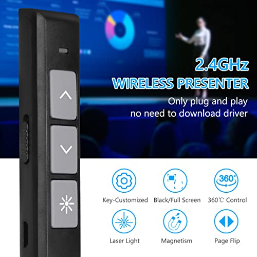 Vicloon Presenter Wireless, Presenter Wireless per Presentazione Powerpoint da 2.4GHZ, Penna Telecomando Senza Fili con Ricevitore USB, Dispositivo per Presentazioni di Portata Wireless 100M
