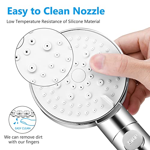 【Non intasare mai】Progettato per un uso a lungo termine: il potente soffione doccia è dotato con 52 ugelli in silicone autopulenti e 18 ugelli in ABS per una facile manutenzione, non ostruirà facilmente l'uscita dell'acqua della testina.