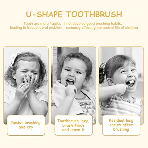 【DESIGN A FORMA DI U】: lo spazzolino da denti a forma di U è ergonomico, molto adatto alla forma e alla meccanica della struttura dei denti dei bambini. Aiuta i bambini a non resistere alla tentazione di lavarsi i denti e da allora adorano lavarsi i denti.