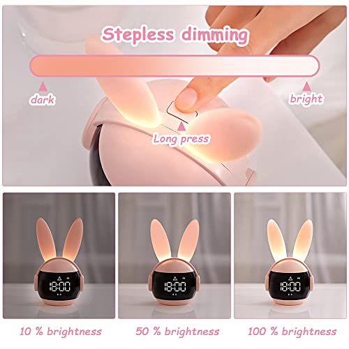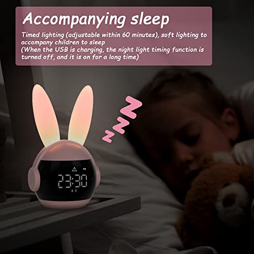Vicloon Sveglia Bambini da Comodino, Sveglia Digitale per Bambini, Sveglia per Bambini con Funzione Snooze, Timer, 6 Suonerie, 4 Volumi, Luce Regolabile All'infinito, USB Ricaricare, Coniglio Rosa