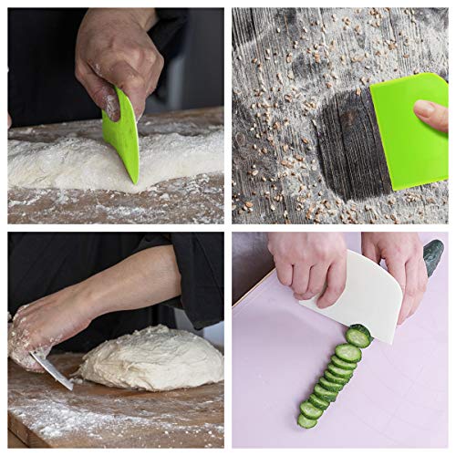 【Pacchetto incluso】 Confezione da 3, inclusi 2 raschietti in plastica per pasta e 1 pezzo in acciaio inossidabile. La dimensione del raschietto in plastica è 12 x 9,5 (cm), la taglierina in acciaio inossidabile è 16 x 12 (cm).
