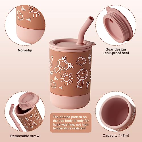 Vicloon Tazza con Cannuccia per Bambini, 147ml Tazza da Allenamento per Bambini, Tazza in Silicone per Bambini Antiscivolo, Progettato per L'alimentazione del Bambino, con Spazzola per Pulizia, Rosa