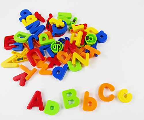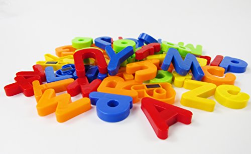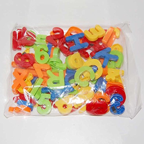 Componenti: 80 lettere e numeri magnetici con cinque colori diversi (verde, blu, arancione, rosso e giallo), comprende 26 lettere maiuscole, 26 minuscoli, 20 cifre + 8 simboli. È facile per il vostro bambino distinguere queste lettere alfabetiche.