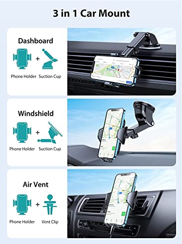 Supporto universale per cellulareOltre alla staffa e al supporto a ventosa, la clip per bocchetta dell'aria è un regalo extra per te (si adatta a tutte le prese d'aria con pale di sfiato orizzontali o verticali). Può essere montato facilmente su una varietà di punti e superfici. Come cruscotto, parabrezza, prese d'aria, ecc. Supporto perfetto per tutte le auto, tra cui camion, taxi, SUV, BMW, pickup, ecc