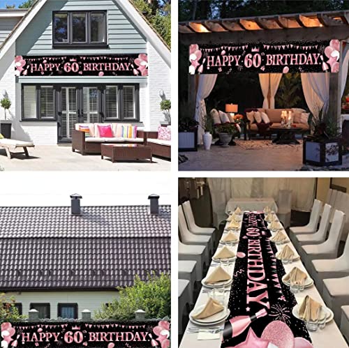 VICSOM 60° Banner di Compleanno, Banner di Buon Compleanno Oro Rosa, Poster di 60° Compleanno, Decorazioni di Compleanno per Lei, Photo Booth Backdrop Banner per Donne