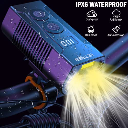 Victagen Luci per Bici Luce per Guida Notturna da 5000 Lumen 3 LED, Luce per Bici Anteriore e Posteriore Super Luminosa, Set di luci per Bici Ricaricabile Tramite USB, Faro per Bici a 6 modalità