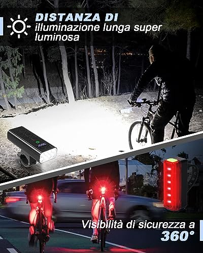 Victoper luci bici 2023 Anteriore Posteriore Aggiornamento 10000 Lumen Super Luminosa 8 LED 5+4 Modalità IPX6, Ricaricabile via USB, Display LED, Facile da Installare
