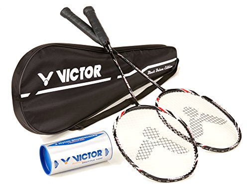 Victor, set per badminton, 2 racchette Victec 500 Black Edition/borsa porta racchette/3 palline in nylon
