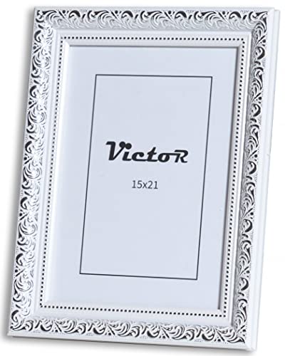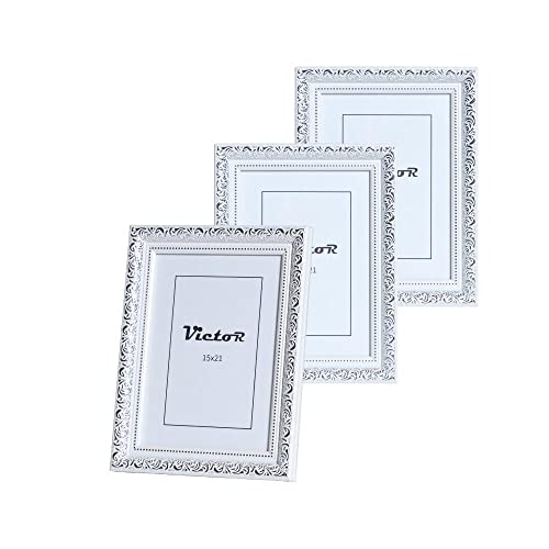 Victor Cornice Antica Rubens Set da 3 in 15x21 cm Bianco Argento - Striscia: 30x20mm - vetro vero - stile barocco - Cornice Antica