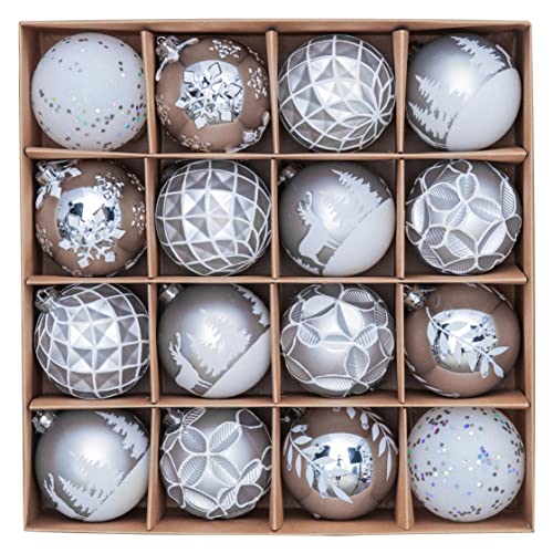 Victor's Workshop Addobbi Natalizi 16 Pezzi 8cm Palle di Natale, Frozen Winter Silver e White Shatterproof Christmas Ball Ornaments Decoration for Christmas Tree Decor