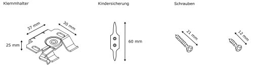A seconda della selezione, set da 2 supporti universali incluso blocco di sicurezza per bambini oppure set da 3 supporti universali incluso blocco di sicurezza per bambini