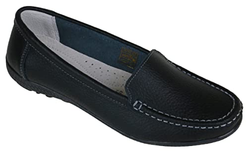 Victoria Schwarzer Scarpe da donna comode in pelle, mocassini, per il tempo libero, con plantare estraibile, Nero, 37 EU