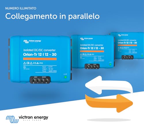 Victron Energy Orion-Tr Convertitore DC-DC Isolato converte la tensione da 12 a 12-Volt con una uscita di 30 ampere e 360-Watt, insieme a protezione IP43