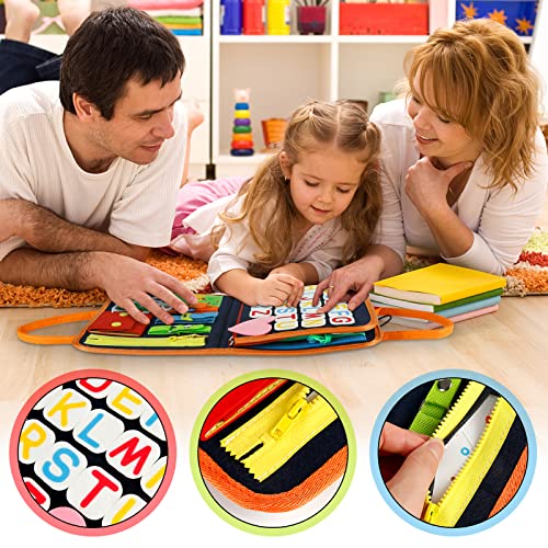 。◕‿◕。【Tavola per bambini 16 in 1】Presenta 16 tipi diversi di fibbie, lacci, tasche con cerniera, ecc. e un set di lettere alfabetiche e numeri con gancio e anello (36 pezzi)