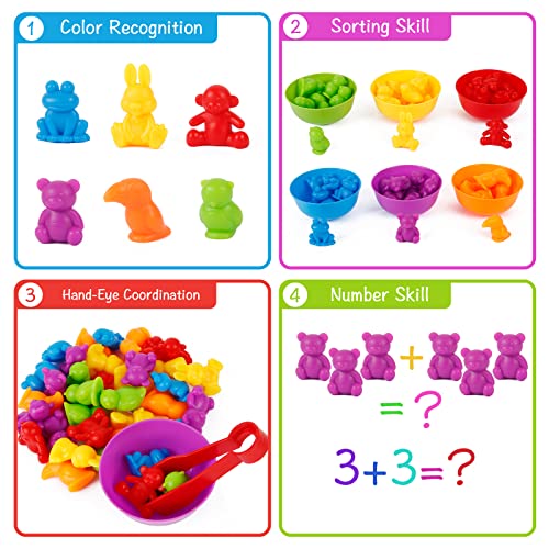 。◕‿◕。【Giocattoli educativi Montessori】I diversi colori dei animali della Fattoria da contare possono migliorare la capacità di riconoscimento dei colori, l'abilità matematica, sviluppando così concetti matematici come addizione, sottrazione, moltiplicazione e divisione