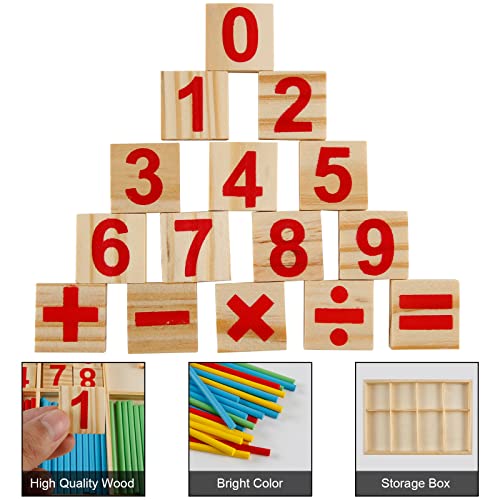 Victse Montessori Giocattolo Matematico, Blocchi e Bastoncini di Conteggio in Legno, Gioco Digitale Bastoni Legno con Blocchi e Bastoni Conteggio, Giocattolo educativo Montessori 3 anni e +