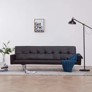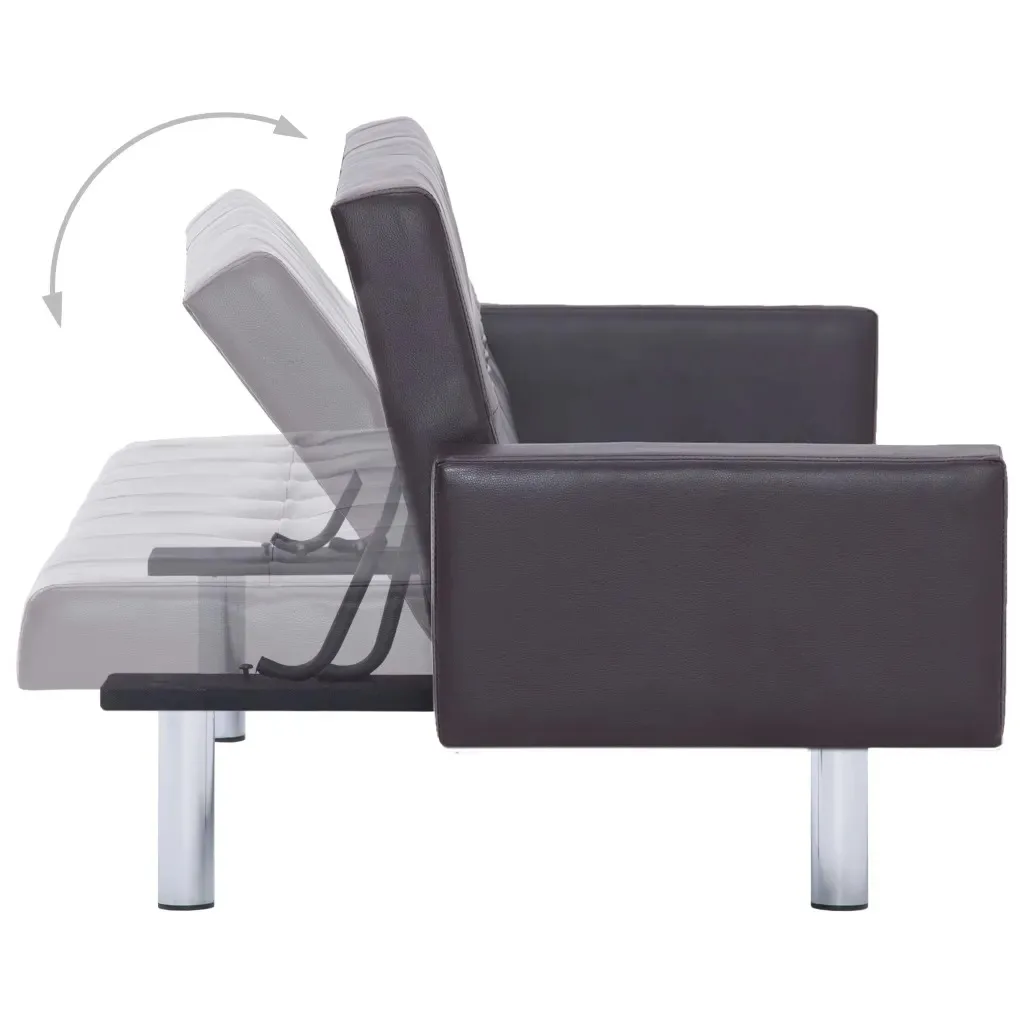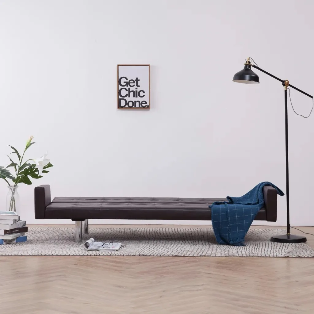 VidaXL Sofa Bed With Armrest Brown Leatherette Living Room Sofas