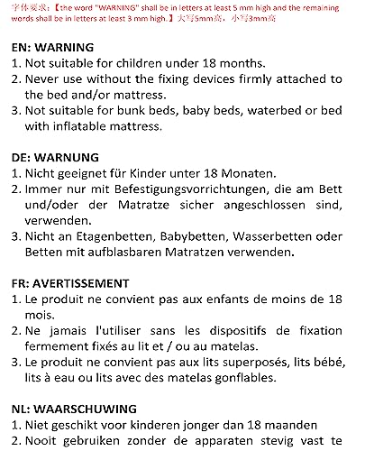 Può essere utilizzata per tutti i letti (tranne letti a castello, lettini per bambini, lettini ad acqua o letti con materassini gonfiabili) con materassi di spessore 10-20 cm.La barriera è realizzata in tessuto in poliestere lavabile e tubi di metallo leggeri