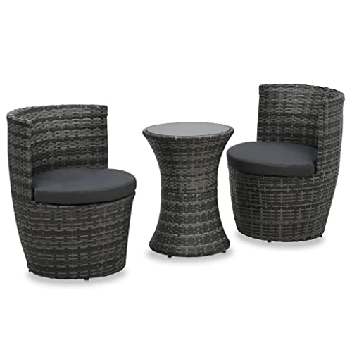 VidaXL Set da Bistrot 3 pz con Cuscini in Polyrattan Grigio
