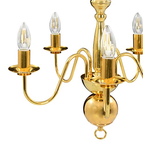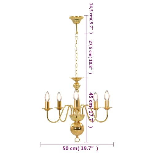 VidaXL Candelabro 5 Lampadine E14 Anticato Lampada da Soffitto a Sospensione Luce Pendente Base Metallo Dorato Gocce Acrilico Trasparente