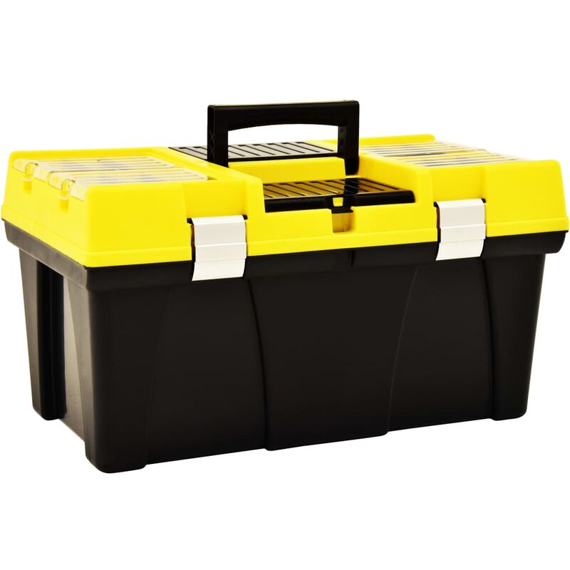 Questa cassetta degli attrezzi, con vassoi profondi e vani portaoggetti di varie dimensioni, costituisce un fantastico aiuto in garage, officina e ambienti simili! Questo pratico strumento organizzativo sarà un'ottima proposta per le persone che apprezzano la pulizia e l'ordine durante il fai-da-te e l'artigianato, ma anche per i professionisti sul posto di lavoro. Grazie agli scomparti con coperture trasparenti sul coperchio, potete facilmente riconoscere e trovare bulloni, dadi, chiodi e altre piccole parti. Dotata di divisori regolabili e vassoi profondi per chiavi e punte, la scatola di assortimento può contenere strumenti di diverse dimensioni, garantendo che tutto trovi il suo posto. La maniglia intuitiva consente di trasportare il contenuto. Colore: Giallo e nero Materiale: Plastica Dimensioni: 595 x 337 x 316 mm (L x P x A) Vassoio profondo con scomparti per chiavi e punte Organizzatori sul coperchio Maniglie laterali Foro per lucchetto Divisori regolabili SKU: 146270