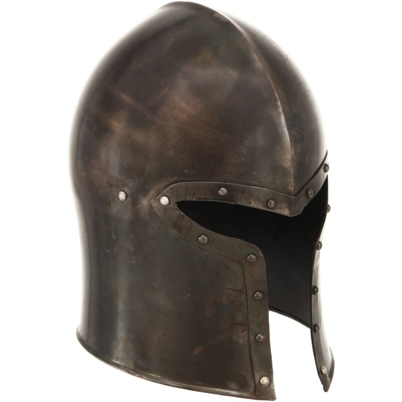 Questo elmo per armatura stile anticato è perfetto per LARP (giochi di ruolo dal vivo), cosplay, feste a tema storico, festa di Halloween, oggetti di scena teatrali e rievocazioni storiche. L'elmetto da armatura è una replica esatta di un originale elmetto da cavaliere medievale barbuto. Realizzato in acciaio calibro 18, unisce stile antico e materiale robusto in un elmo accattivante che si abbina perfettamente al vostro abbigliamento da cavaliere. Questo casco ha un design aperto a "T", rivelando solo gli occhi, il naso e la bocca. Inoltre, è un bel pezzo da esposizione. Colore: Nero Materiale: Acciaio calibro 18 (lucidato) Dimensioni: 24 x 20 x 30 cm (L x P x A) Replica di un elmo barbuta medievale in stile anticato