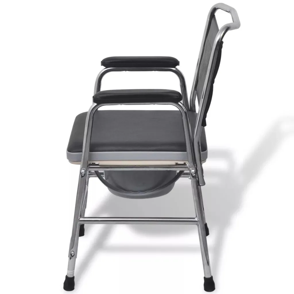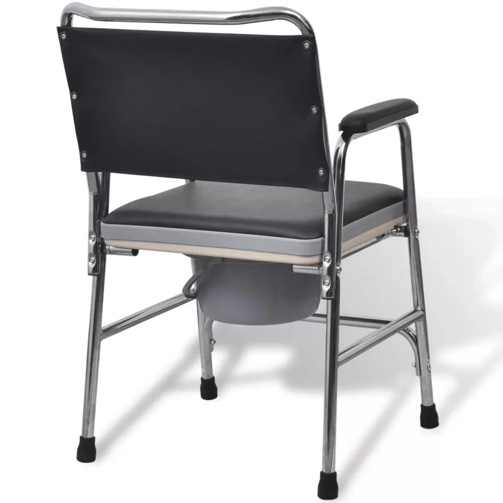 VidaXL Commode Chair Steel Black 44 X 50 X 85 Cm (W X D X H) Support Up To 1.063 Kg Sturdy Steel Frame + PU Seat Cushion