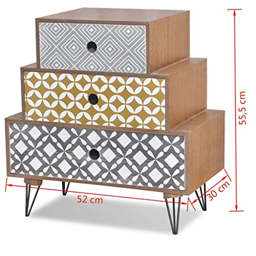 VidaXL Comodino con 3 Cassetti Marrone Mobiletto Tavolino Notte Cassettiera
