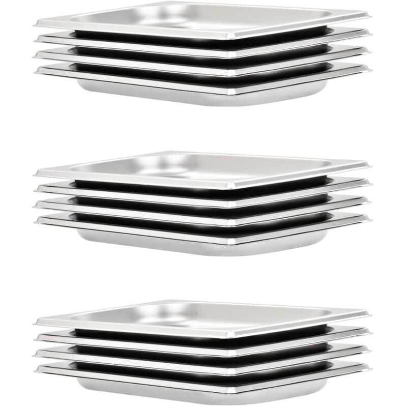 Questi contenitori Gastronorm impilabili saranno un'ottima aggiunta ai vostri accessori da cucina. Realizzata in acciaio inossidabile e robusto, la teglia da cucina a vapore ha una costruzione solida ed è facile da pulire. Il materiale resistente evita i graffi e facilita la manutenzione. La teglia per alimenti ha le dimensioni standard dei formati Gastronorm, consentendo così un uso universale e un ampio campo di combinazioni. In particolare si adatta perfettamente a tutti gli elettrodomestici da cucina e le attrezzature professionali come bagnomaria, scaldavivande e buffet di insalate. Questi contenitori sono impilabili e possono essere nascosti per risparmiare spazio, inoltre sono molto pratici e ideali per l'utilizzo in ristoranti, alberghi, feste e a casa. La consegna include 12 contenitori per alimenti. Specificazioni: Colore: Argento GN 1/4 Dimensioni: 265 x 162 x 20 mm (L x P x A) Materiale: Acciaio inossidabile Volume massimo: 0,9 L La consegna include 12 contenitori per