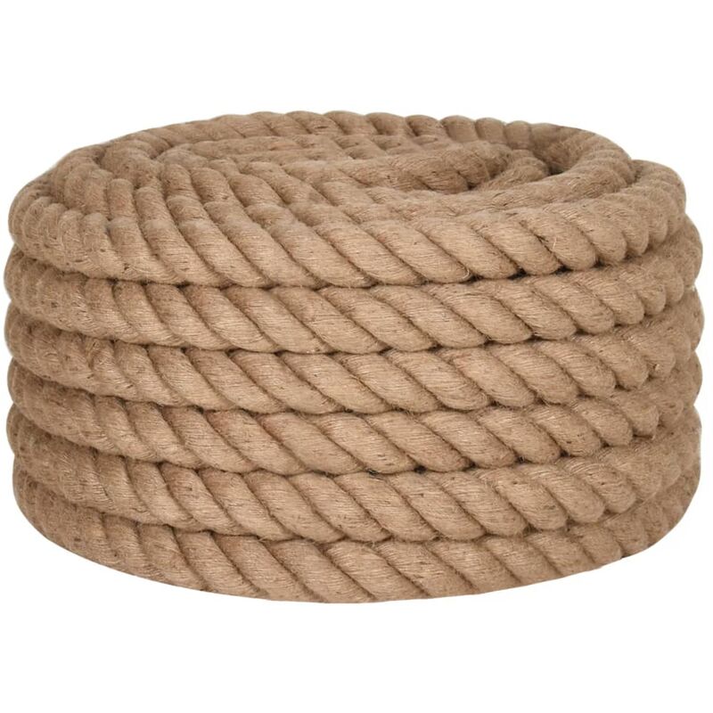 Questa corda in juta versatile è ideale per progetti artistici e artigianali, composizioni floreali, giardinaggio, decorazioni, e così via. È un ottimo ausilio quotidiano. Materiale naturale: Questa corda di canapa, intrecciata in modo stretto da 3 piccoli fili di iuta naturale al 100%, è forte, resiliente, resistente agli agenti atmosferici e sicura. Multiuso: Lo spago in iuta è ottimo per l'artigianato, le decorazioni, l'imballaggio, il confezionamento, l'impacchettamento, il giardinaggio, ecc. Facile da usare: La corda in juta è molto comoda da utilizzare. Potete tagliarla liberamente alla lunghezza che desiderate. Nota: Questa corda non è adatta per l'arrampicata, il sollevamento o il carico delle merci, e per l'utilizzo come altalena o come parte di un'altalena. Materiale: 100% Juta naturale Lunghezza totale: 25 m Diametro: Circa Ø36 mm Peso totale: 20 kg Peso per metro: 800 g SKU: 153774