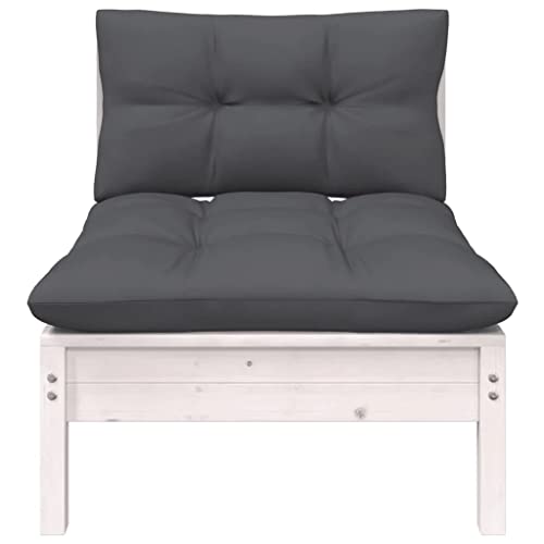 VidaXL Divano Centrale da Giardino con Cuscini Bianco Massello di Pino