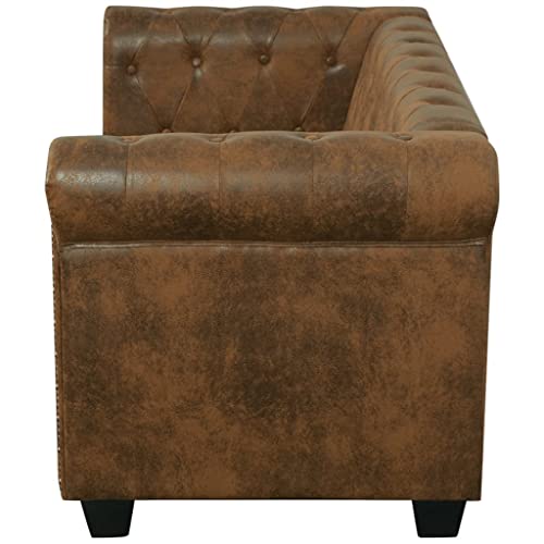 VidaXL Divano Chersterfield a 2 posti Imbottito Pelle Artificiale Marrone Sofa