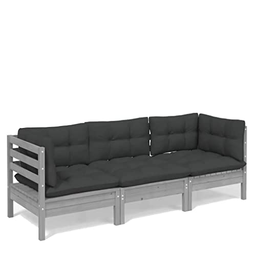 VidaXL Divano da Giardino a 3 Posti con Cuscini Crema Massello di Pino