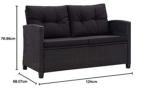 VidaXL Divano da Giardino a 2 Posti con Cuscini Divanetto con Imbottitura Salottino da Esterni Mobili per Patio Nero 124 cm in Polyrattan