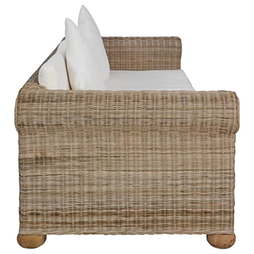 VidaXL Divano a 3 Posti con Cuscini Comodo Rilassante Confortevole Solido Robusto Pratico Resistente Durevole Sofa Poltrona in Rattan Naturale