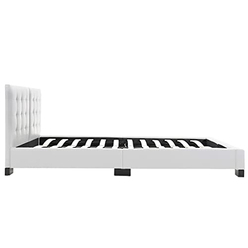 VidaXL Giroletto Classico Imbottito Sobrio Elegante Testata in MDF Telaio in Legno Pioppo Struttura Letto Bianco in Similpelle 160x200 cm
