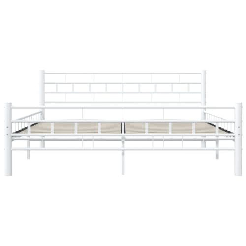 VidaXL Giroletto con Rete a Doghe Elegante Classico Robusto Resistente Arredo Casa Struttura Telaio Letto Bianco in Metallo 160x200 cm