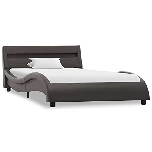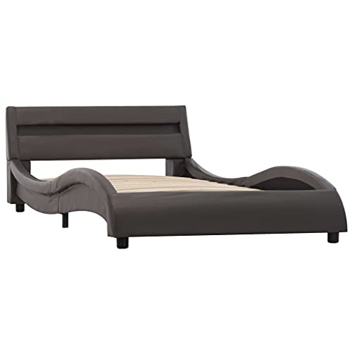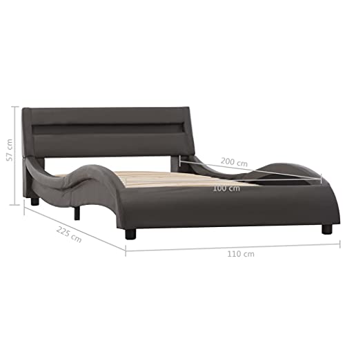 VidaXL Giroletto Imbottito con LED Elegante Moderno Robusto a Doghe Struttura Telaio Letto Telaio in Acciaio MDF Grigio in Similpelle 100x200 cm
