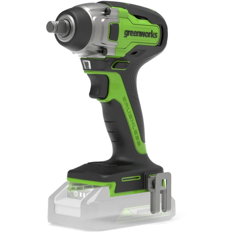 Questo pratico e potente avvitatore a impulsi senza spazzole Greenworks GD24IW400 a batteria rende facile anche il lavoro di officina più difficile. L'avvitatore a impulsi a batteria fornisce una coppia massima di 400 Nm e una velocità massima di 2800 giri/min. Questo strumento dispone anche di un attacco quadro da 1/2. La sua retroilluminazione a LED può illuminare gli angoli bui e le aree di lavoro scarsamente illuminate. Grazie al motore senza spazzole, questo avvitatore a impulsi è sia più veloce che più silenzioso rispetto ad altri modelli. Ha anche una comoda impugnatura in gomma morbida per maggiore praticità e comfort. Questa chiave a percussione svita e stringe facilmente dadi e bulloni ed è uno strumento eccellente per i professionisti. L'avvitatore ad impulsi brushless GD24IW400 richiede una batteria aggiuntiva da 24 V e un caricabatterie universale da 24 V. Nota: La batteria e il caricabatterie non sono inclusi nella consegna. Tutti gli utensili a batteria Greenworks con
