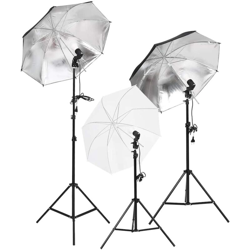 Questo set di luci da studio composto da 3 lampade diurne, 3 portalampada, 3 treppiedi e 3 ombrelli (1 bianco, 2 argento). _datto per foto e video ed facile da portare con voi. Varie applicazioni: Il set di illuminazione pu essere utilizzato in uno studio o sul posto. _datto alla fotografia analogica e digitale. Risparmio energetico: L'emissione luminosa fornita da 3 lampadine LED a basso consumo energetico da soli 13 watt ciascuna. Altezza regolabile: Potete fissare la lampada su un treppiede e raggiungere un'altezza massima di 230 cm. Prestazioni eccellenti: Utilizzando le lampade diurne con una temperatura di colore di 5500 Kelvin, possibile catturare il soggetto in modo naturale. I tre ombrelli forniscono una luce soffusa, in modo da evitare le ombre pi dense. Luci: 220 V-50/60Hz Portalampada: E27 Durata: 5000 ore Temperatura del colore: 5500 Kelvin Potenza luminosa: 13 Watt per lampada (lampadina a LED) La potenza effettiva pari a 50 W Diametro ombrelli: 84 cm Treppiedi