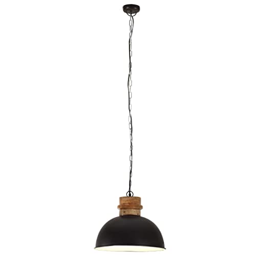 VidaXL Lampada Soffitto Industriale 25 W Nero Rotonda Legno Mango 42cm